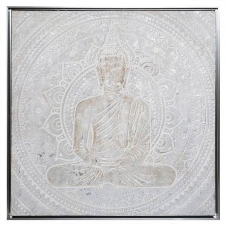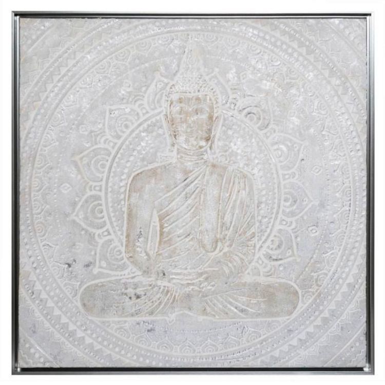 Toile Peinte Carrée Bouddha 78x78cm Argent
