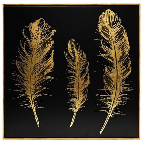 Toile Peinte Plumes 78x78cm Noir & Or