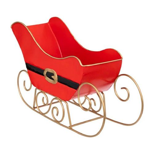 Traineau Déco en Métal Père Noël 28cm Rouge