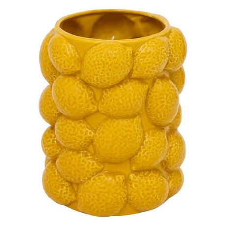 Informations Techniques : Dimensions : D. 14 x H. 18 cm Matière : Grès Spécificités : Déco & Coloré Vase cylindrique Design citron en relief Poids : 0,92 kg Couleur : Jaune