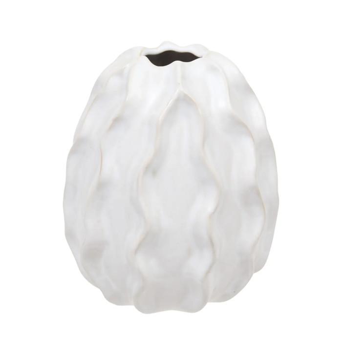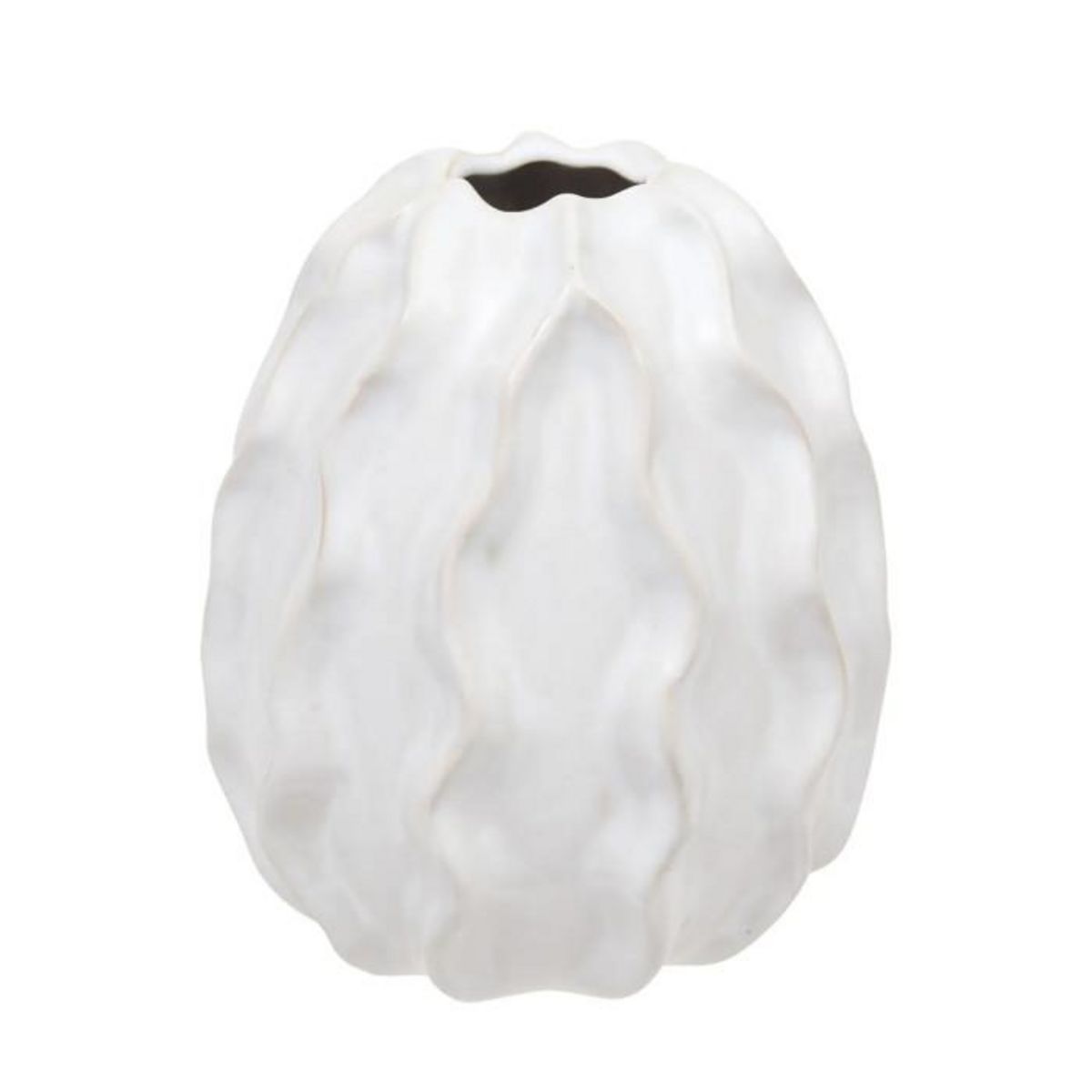 Informations Techniques : Dimensions : D. 14 x H. 17 cm Matière : Grès Spécificités : Élégant & Design Vase déco uni Ondulation en relief Poids : 0,9 kg Couleur : Blanc