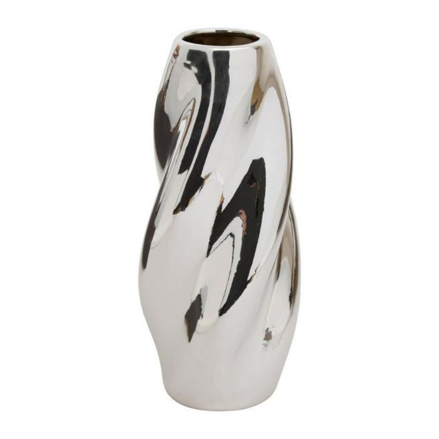 Informations Techniques : Dimensions : D. 11,5 x H. 28,5 cm Matière : Dolomite Spécificités : Élégant & Déco Vase effet métallique Design torsadé Poids : 0,61 kg Couleur : Argent
