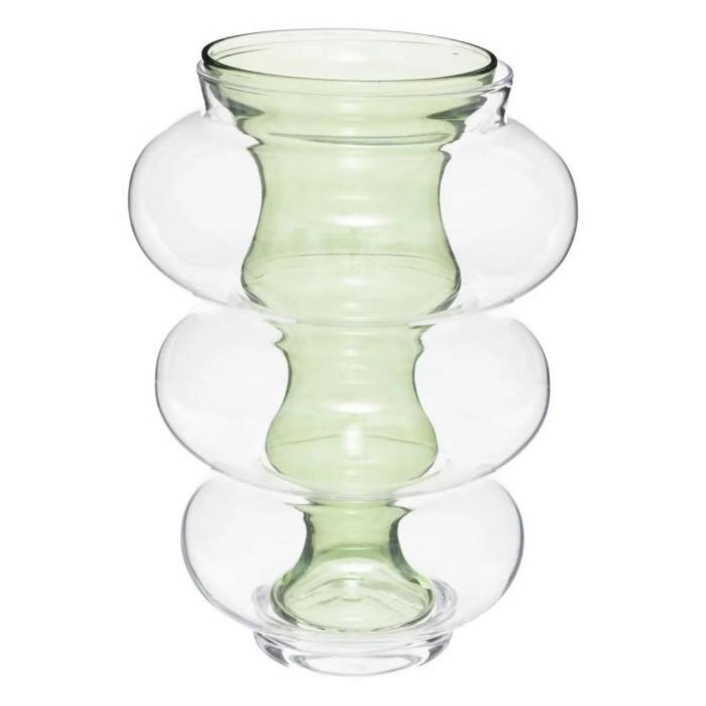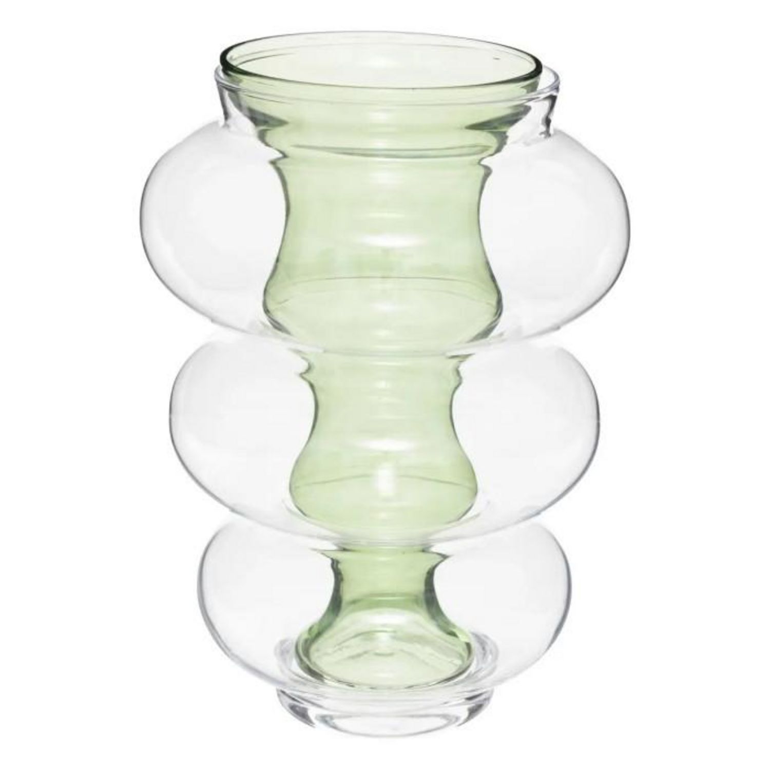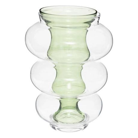 Informations Techniques : Dimensions : D. 25,5 x H. 36 cm Matière : Verre Spécificités : Déco & Original Vase design double Poids : 2,9 kg Couleur : Vert