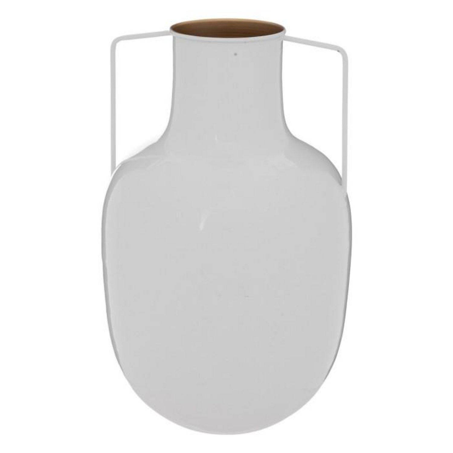 Informations Techniques : Dimensions : L. 20 x l. 20 x H. 30,5 cm Matière : Métal Spécificités : Chic & Tendance Vase Design Avec 2 anses Forme ronde Poids : 0,75 kg Couleur : Blanc