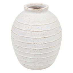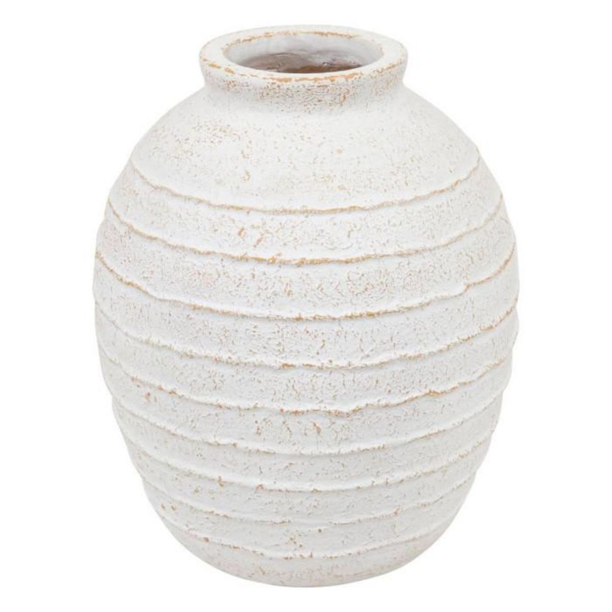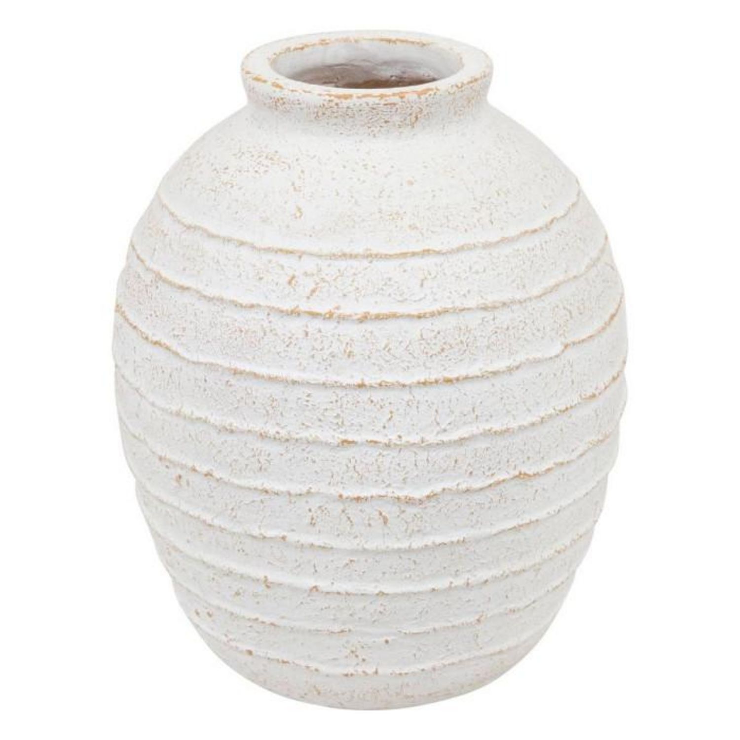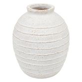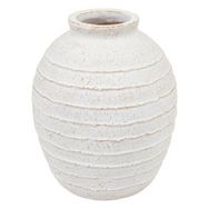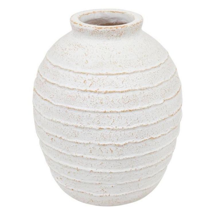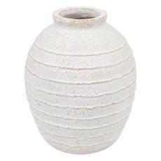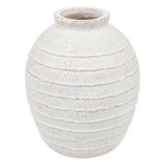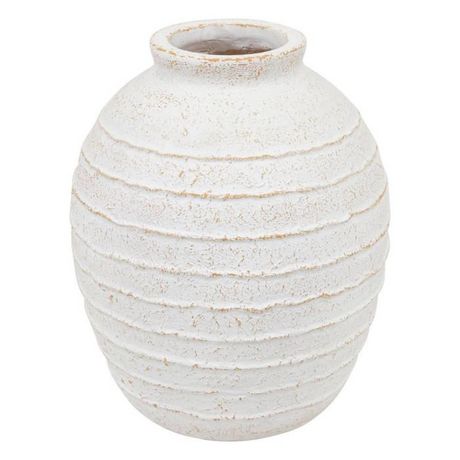 Informations Techniques : Dimensions : D. 32 x H. 38 cm Matière : Oxyde de magnésium Spécificités : Épuré & Antique Vase déco texturé En forme de jarre Poids : 4 kg Couleur : Blanc
