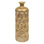 Informations Techniques : Dimensions : D. 18 x H. 60 cm Matière : Acier Spécificités : Chic & Déco Vase cylindrique Motifs striés et martelés Poids : 1,5 kg Couleur : Doré