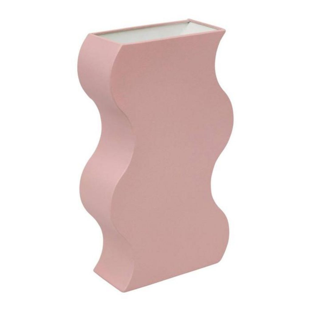 Informations Techniques : Dimensions : L. 21 x l. 8 x H. 35 cm Matière : Métal Spécificités : Déco & Coloré Vase forme vague Design uni Poids : 1,46 kg Couleur : Rose