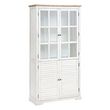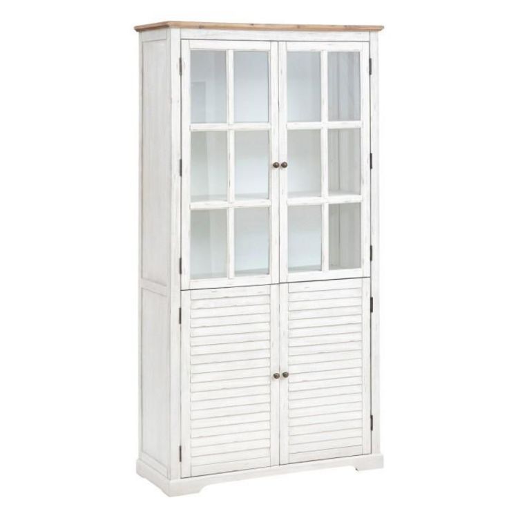 Informations Techniques : Dimensions : L. 95 x l. 40 x H. 190 cm Matières : Placage : MDF Étagères : MDF & Bois (Acacia) Structure & Piètement : Bois (Acacia) Spécificités : Authentique & Pratique Vitrine rectangulaire 2 portes vitrées 2 portes cérusées Poids : 50 kg Couleur : Blanc