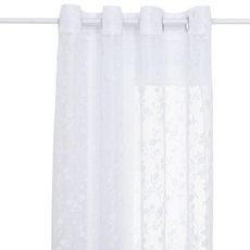 Délicat et tout en transparence, le voilage motif abstrait LAZI est idéal pour habiller une fenêtre et apporter de l'intimité dans une pièce sans l'obscurcir. Réalisé dans un tissage léger à motifs fleuris, ce voilage à effet dentelle est équipé d'œillets métalliques permettant de le fixer très facilement sur une tringle. Proposé en blanc, il se mariera parfaitement avec du mobilier en bois pour former un ensemble convivial.