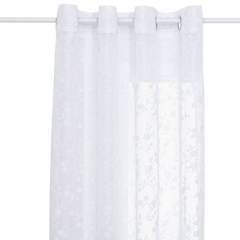 Délicat et tout en transparence, le voilage motif abstrait LAZI est idéal pour habiller une fenêtre et apporter de l'intimité dans une pièce sans l'obscurcir. Réalisé dans un tissage léger à motifs fleuris, ce voilage à effet dentelle est équipé d'œillets métalliques permettant de le fixer très faci