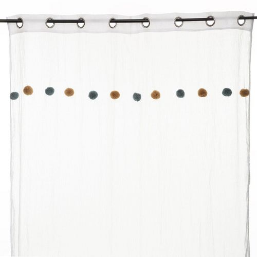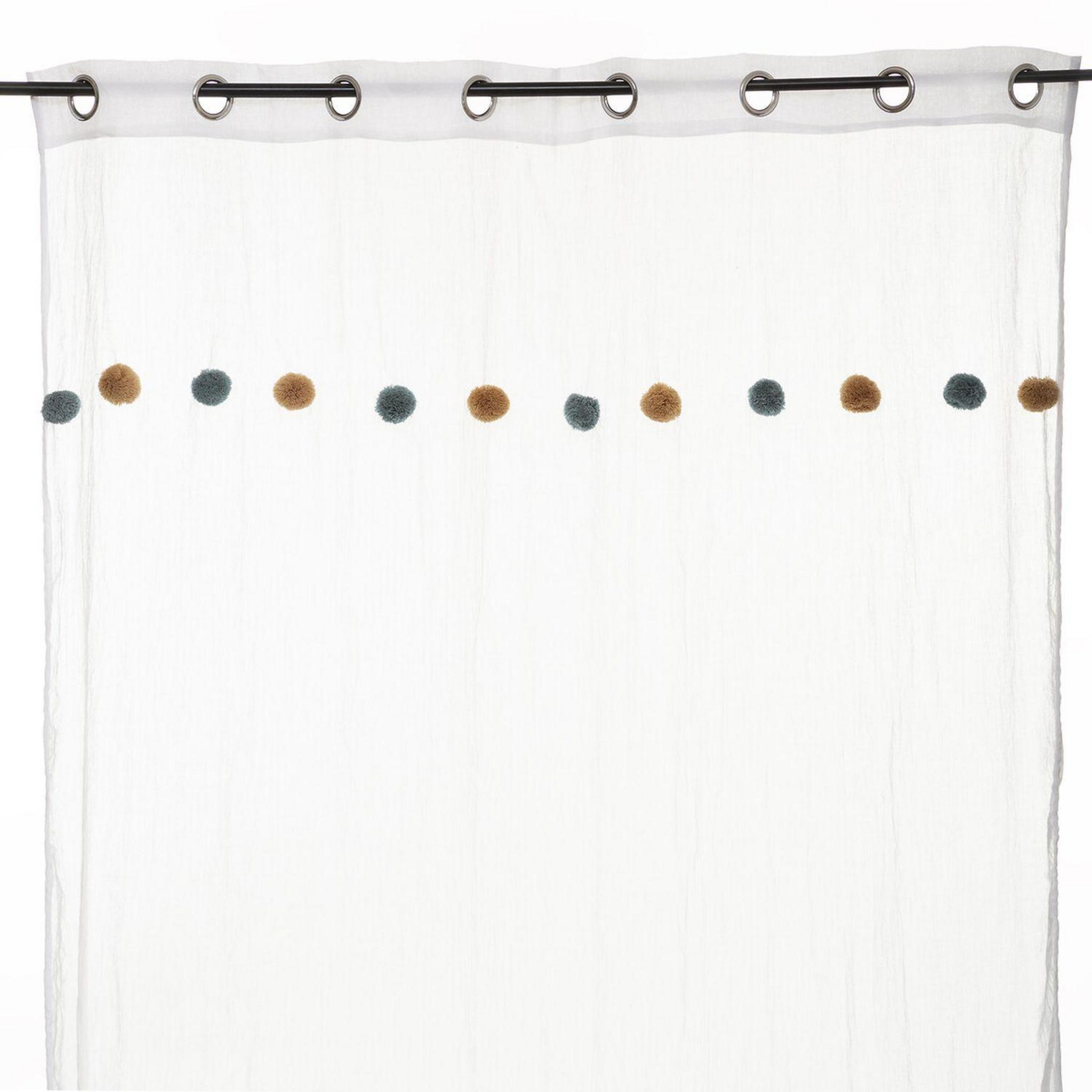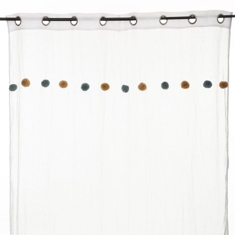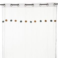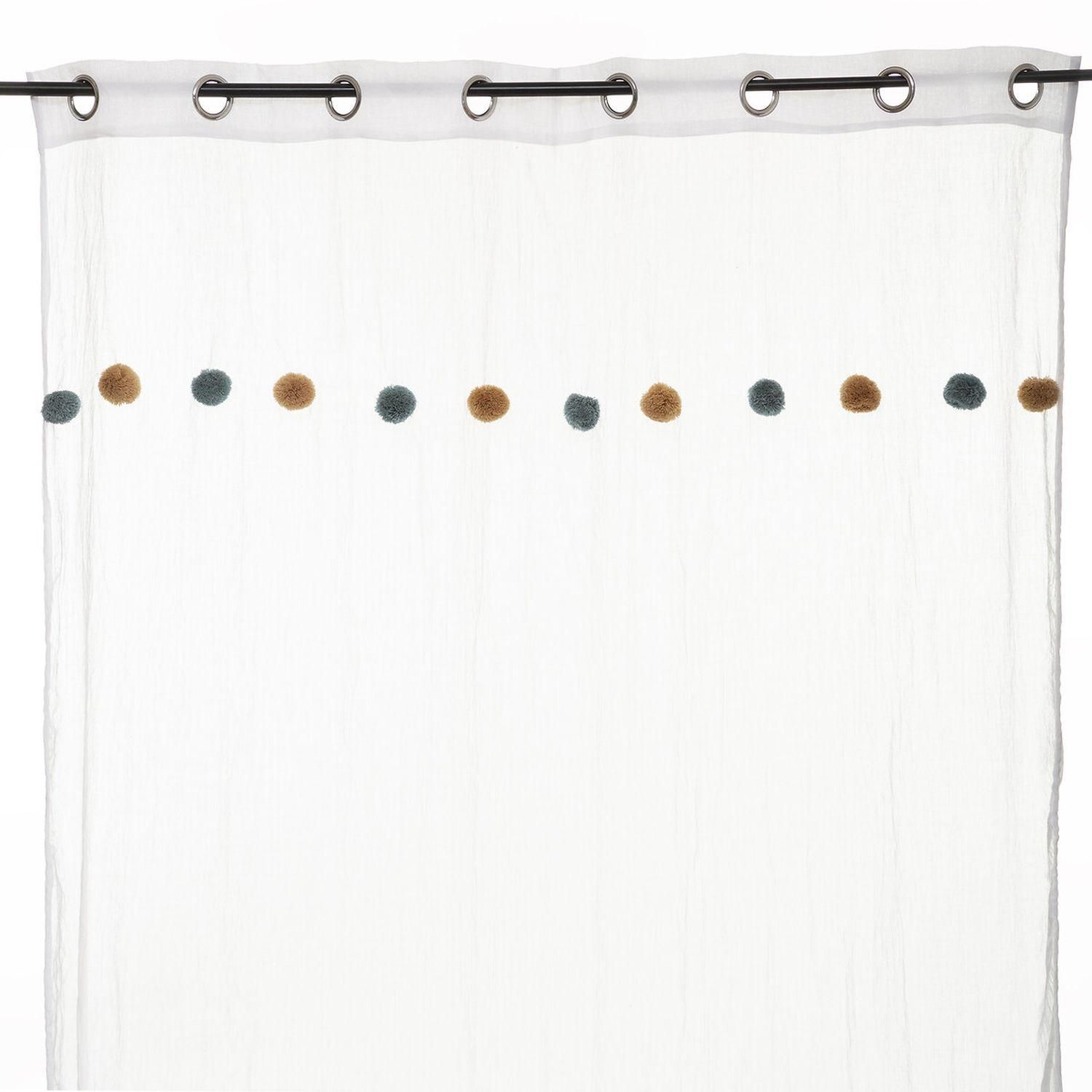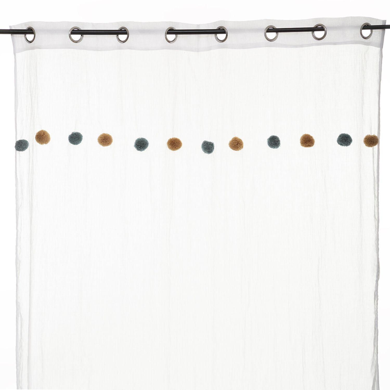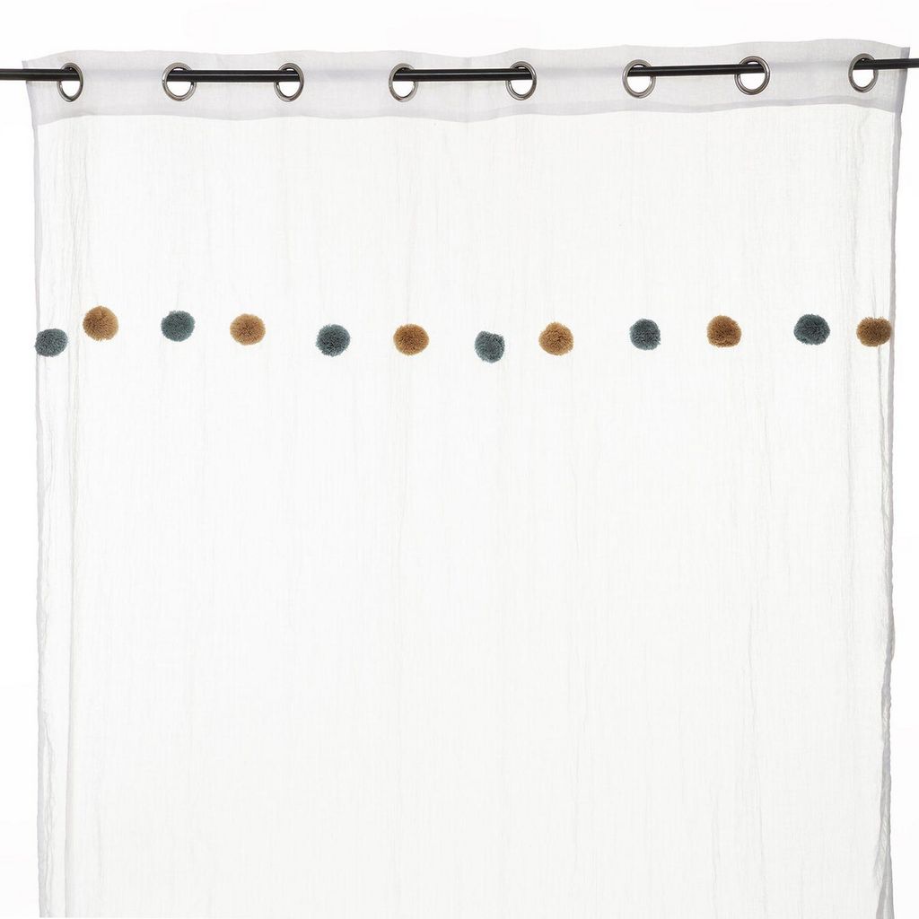 Voilage crème avec Pompons - 140 x 240 cm - Bleu et Ocre