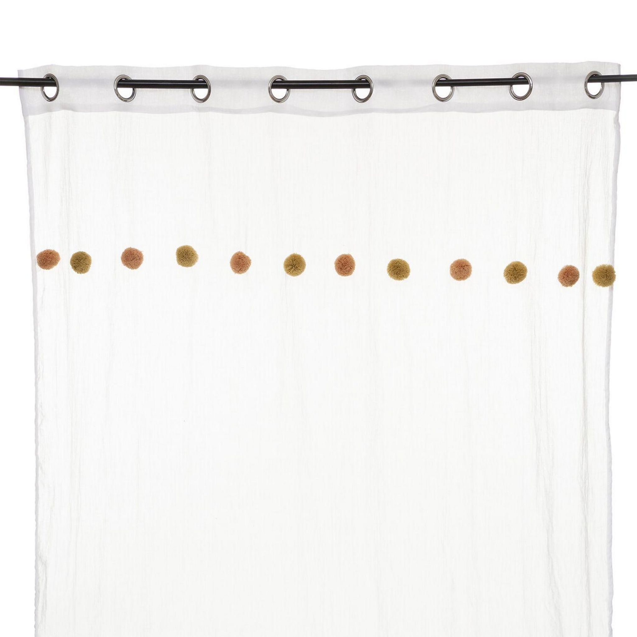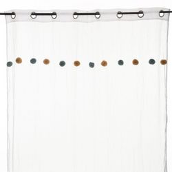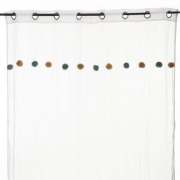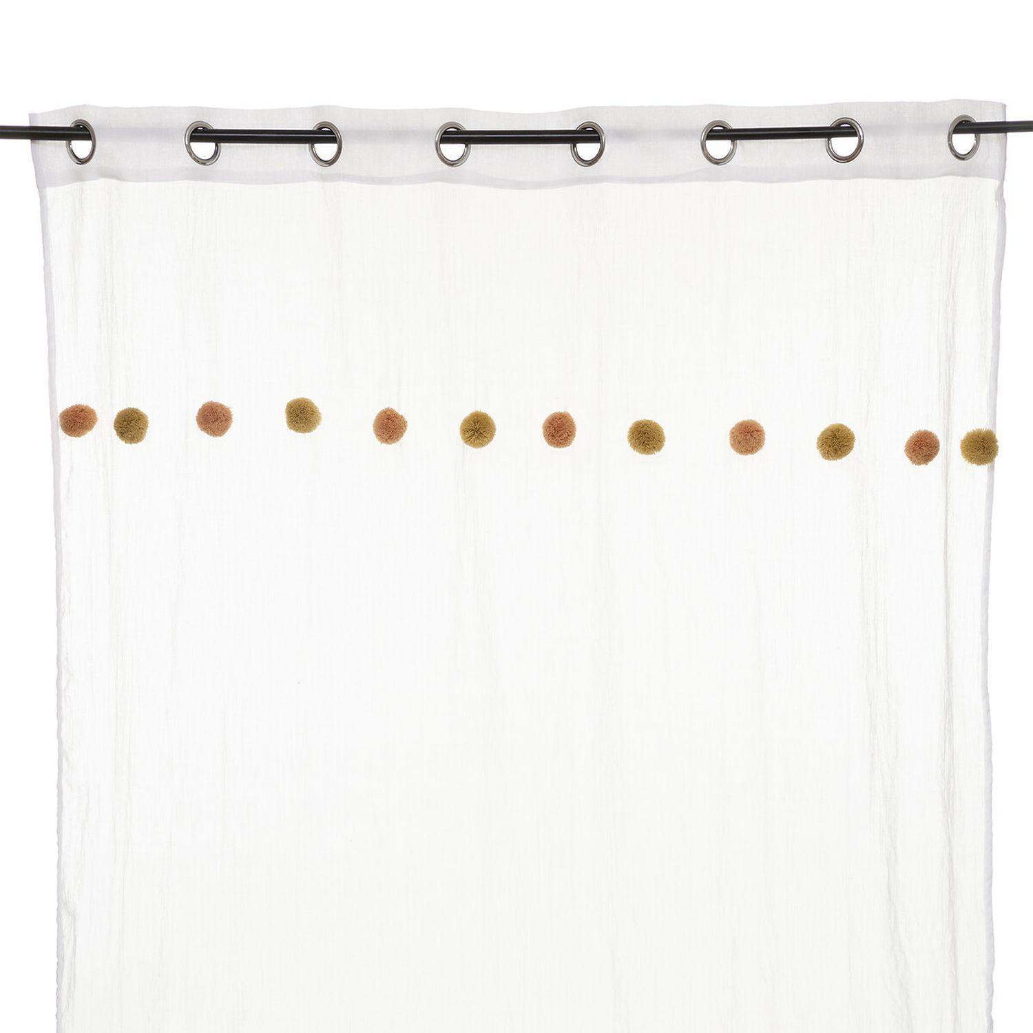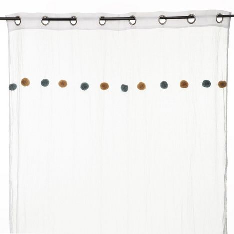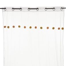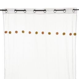 Apportez une touche de couleur à votre pièce avec ce voilage. FICHE TECHNIQUE- Voilage d'intérieur crème.- Tissu et Pompons en Polyester et Coton (65 g).- Voilage non occultant.- Type d'accroche : 8 œillets.- Pompoms : couleur Rose et ocre.CARACTERISTIQUES TECHNIQUES- Dimensions : Largeur 140 cm x E