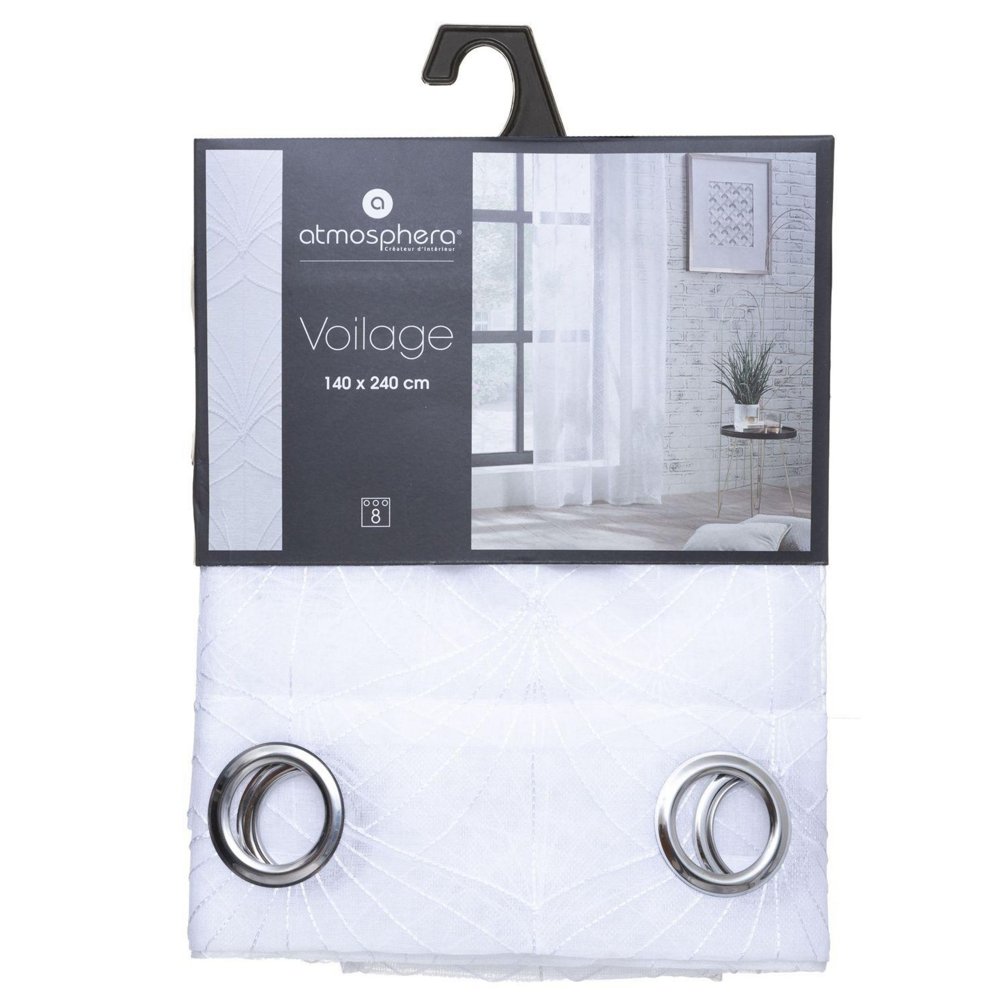 Apportez une touche de luminosité dans votre salon grâce à ce voilage vous permettant de garder une luminosité optimale dans votre pièce.FICHE TECHNIQUE- Voilage d'intérieur.- Gamme : Mia.- Couleur : Blanc.- Détails : Motifs brodés.- Voilage en polyester.- Type d'accroche : 8 œillets.CARACTERISTIQUE