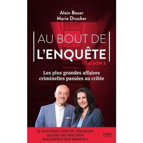 Après les succès des deux premiers tomes, l'adaptation de l'émission à succès de France 2 Au bout de l'enquête , présentée par Marie Drucker et Alain Bauer, revient pour encore plus de cold cases ! Septembre 1986. non loin de Metz, on découvre près d'une voie ferrée désaffectée les corps de deux enfants sauvagement assassinés. L'enquête va s'étendre sur vingt ans et faire surgir l'un des meurtriers les plus inquiétants de notre époque. Juin 1991. Une femme bourgeoise et cultivée est retrouvée assassinée, barricadée dans sa cave. Elément improbable : elle a écrit avec son sang une accusation... Omar m'a tuer . Février 2016. Un couple de quinquagénaires est assassiné en présence du reste de la famille lors d'une fête d'anniversaire... Deux fils et une belle-fille, témoins ou coupables... Cette nouvelle saison d'Au bout de l'enquête revient sur une vingtaine d'affaires criminelles qui ont bouleversé l'opinion. Quelle que soit leur issue, elles ont précipité les familles des victimes et les enquêteurs dans des années de recherche, d'espoir, de déception, de rebondissements, et ont glacé le sang des Français. Ce livre fait le récit de ces crimes, élucidés ou non, et apporte pour chacun l'éclairage inédit d'Alain Bauer. Plus que de simples faits divers, ces histoires racontent une époque, une région, un contexte historique et social, et retracent l'évolution des méthodes d'enquête des services de police et de gendarmerie.