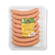 Ingrédients : Viande et gras de porc, glace, bœuf, sel, épices et plantes aromatiques, stabilisants: e451 e450, dextrose, arômes naturels, antioxydant e301, e300, conservateur: e250, boyau naturel