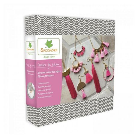 Dans cette jolie boîte réalise des magnifiques bijoux pompoms bohèmes. Cette boîte magnétique contient: boucles d'oreilles, coquillages, pompoms de différentes couleur, pendentifs dorés, anneaux , perles, anneaux ( x20pcs), aiguille, outil pour bijoux ( coupe et pince), et 1 notice avec différents m
