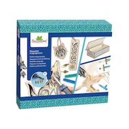 Dans cette boite retrouvez un set complet pour créer autour de la pyrogravure. Réalisez une maquette de dragon, montez votre boîte à trésor, entrainez-vous sur la planche aux épées décorez-les de gravure ou coloriez-les à l'aide des feutres. Créez aussi des bracelets, des porte-clés, des plaques décoratives.. Contient un pyrograveur avec 5 embouts interchangeables, 1 maquette de dragon, 1 boîte à trésor, 2 plaques en bois loup et aigle à personnaliser, 1 planche d'essai, 3 bâtonnets pour réaliser des bracelets en bois, pendentifs et marque page, 2 feutres et une notice d'instructions.