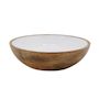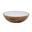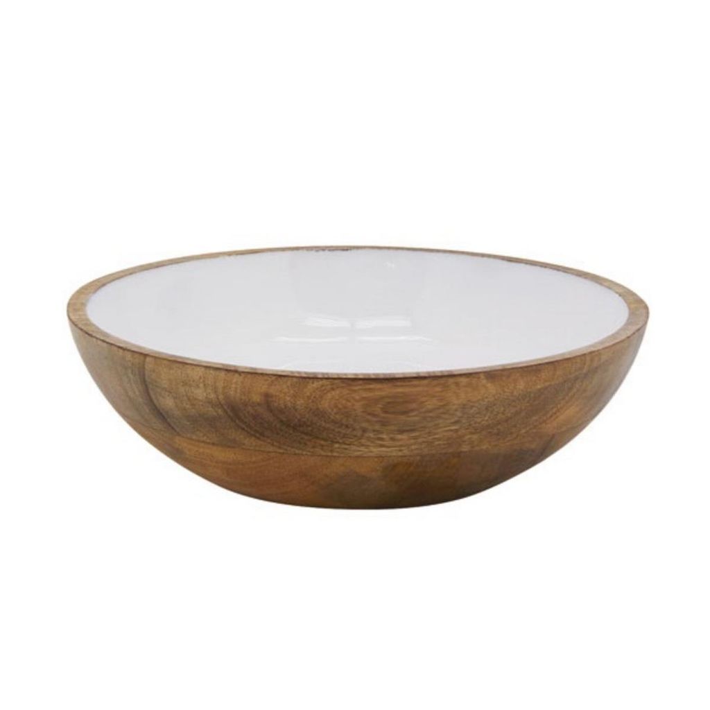 Saladier 25 cm Manguier. Un beau saladier bicolore parfait pour servir vos salades, pour présenter vos fruits ou pour servir de décoration en centre de table! En bois de manguier, un bois durable. Intérieur en résine blanche.