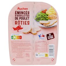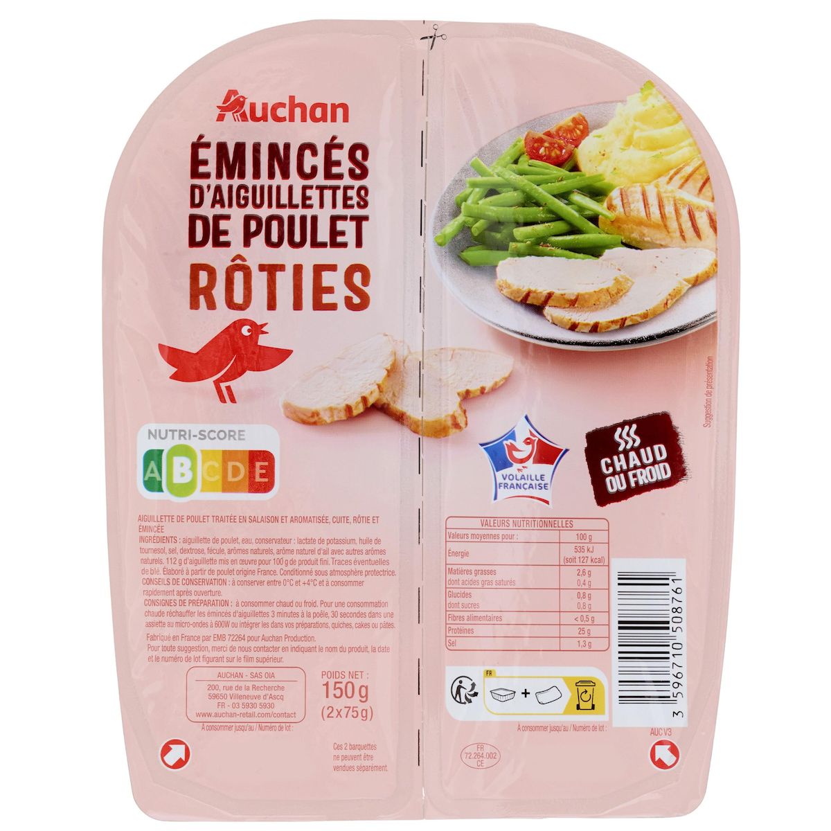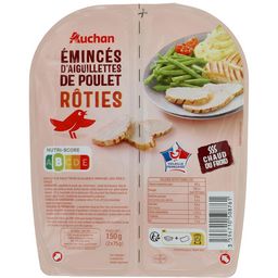 "Des émincés d'aiguilettes de poulet Rôti, moelleux et savoureux.Une barquette sécable pour une consommation à deux ou en plusieurs fois.Une découpe pratique pour agrémenter vos pâtes, vos quiches, vos salades, vos sandwichs.s"