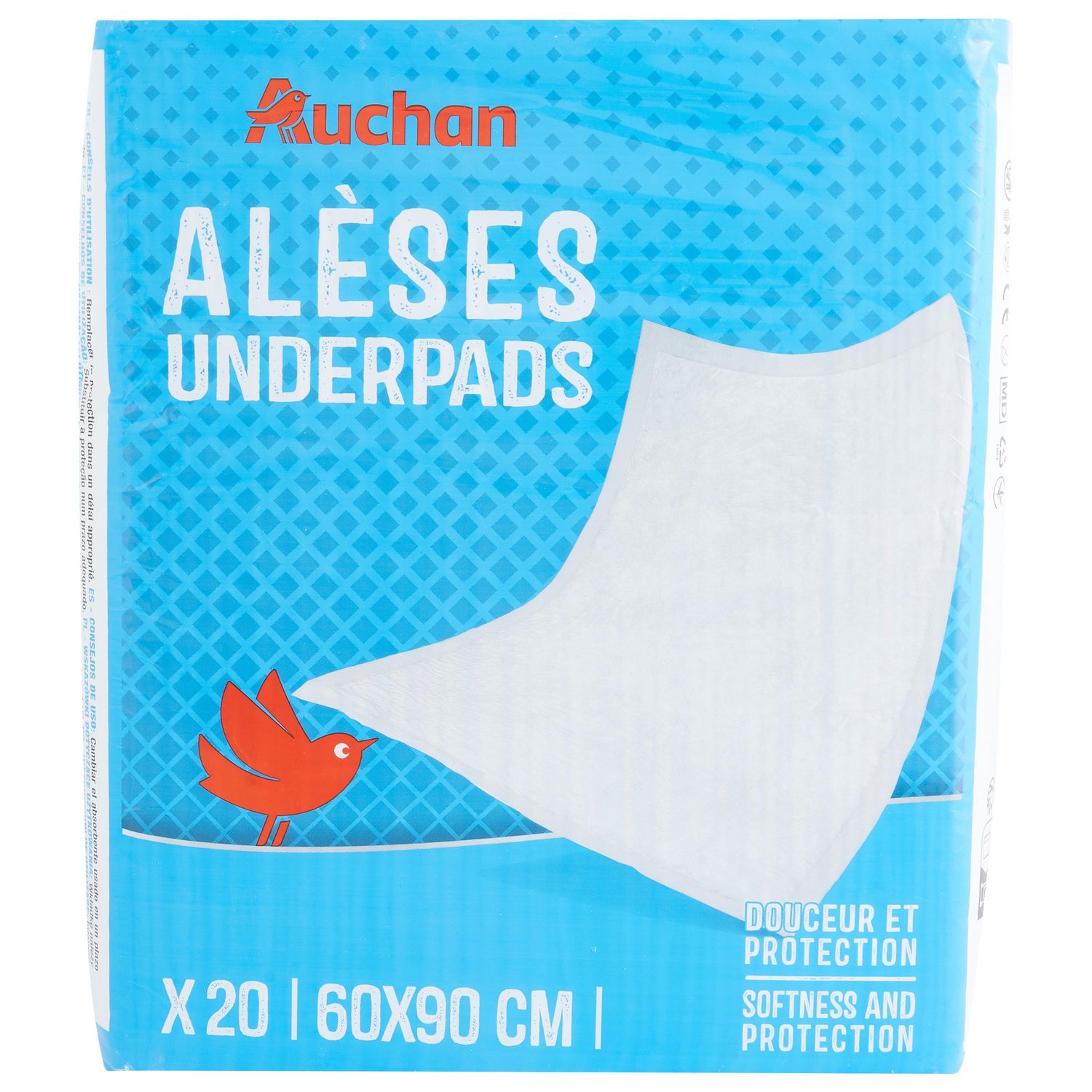 Alèse 60x90 cmIncontinence urinaire adulteProtection hygiénique pour lit, fauteuil roulant, canapé, chaiseVoile de surface douxFilm externe imperméableCet emballage contient au moins 30% de plastique recyclé