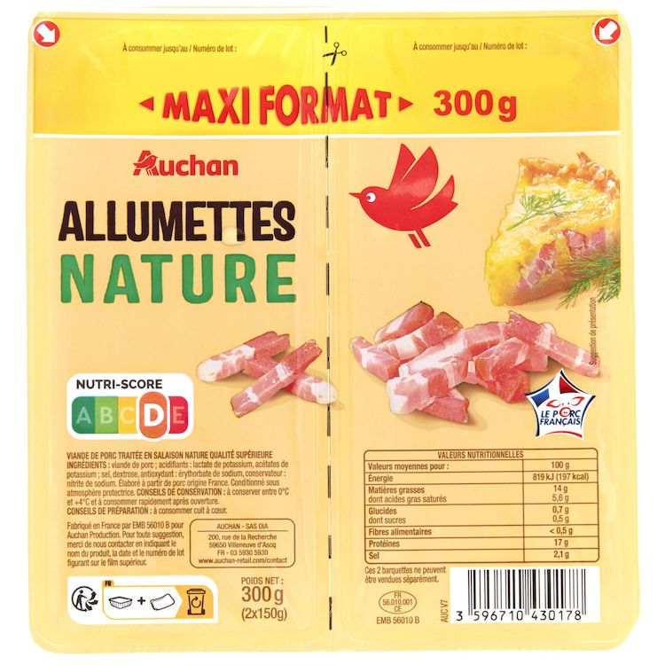 C'est meilleur que les lardons, il y a moins de gras. Il y a deux barquettes, c'est pratique pour la conservation.