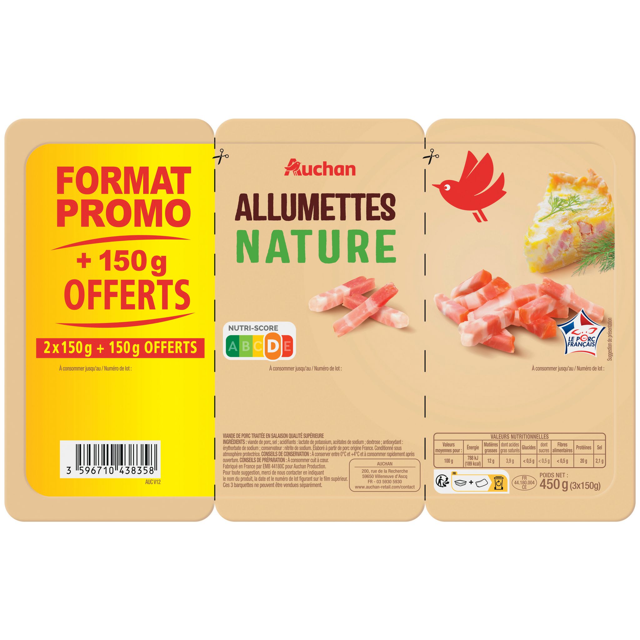 viande de porc traitée en salaison fumée qualité supérieure lardons allumettes nature sans couenne ,ni cartilage.
