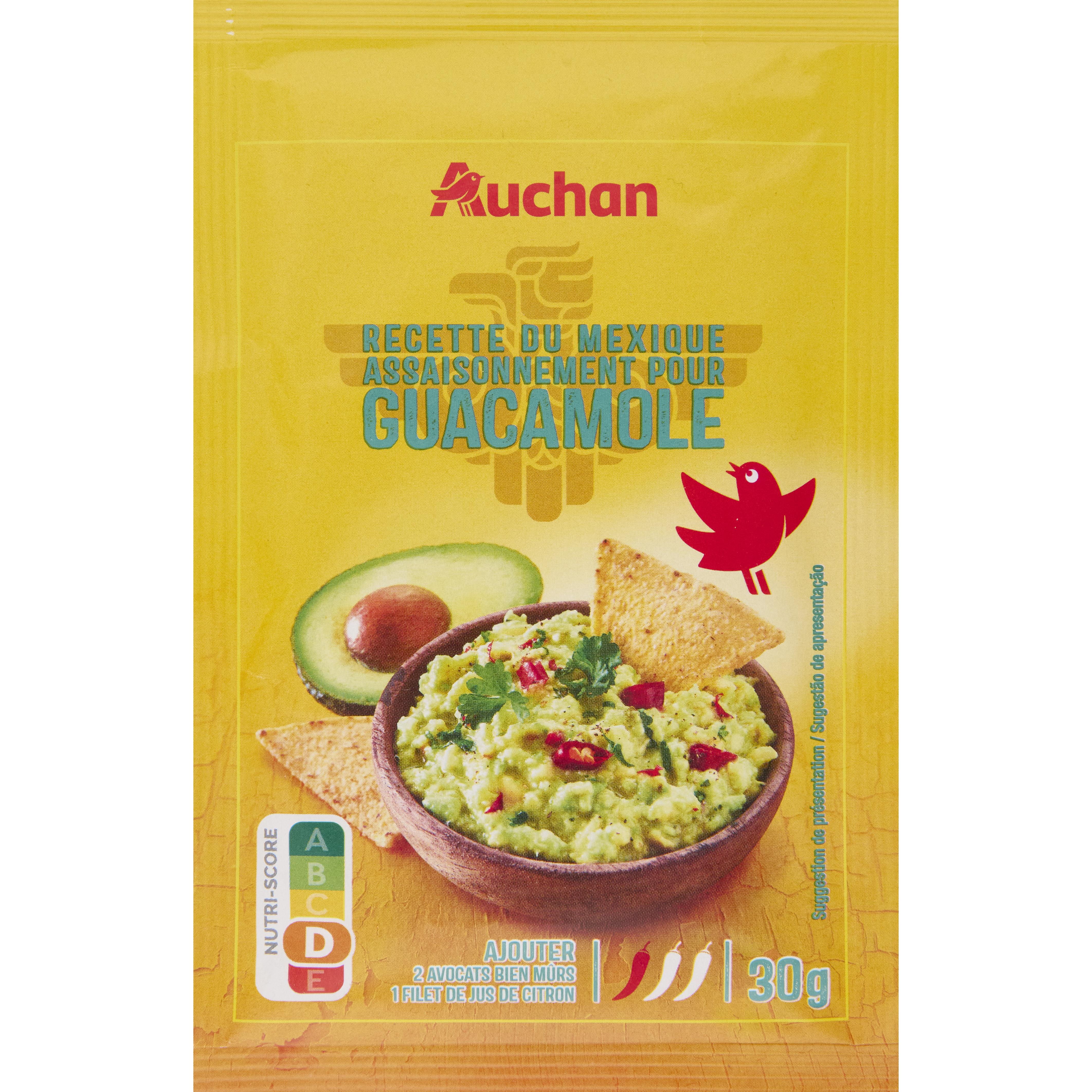 :Ecraser la chair de 2 avocats avec une fourchette, ajouter le sachet et bien mélanger. Afin d'éviter que la purée brunisse, l'arroser avec le jus d'un citron. Placer au réfrigérateur pendant au moins 1 h et bien mélanger avant de servir. Consommer le guacamole dans les 24 h après préparation.