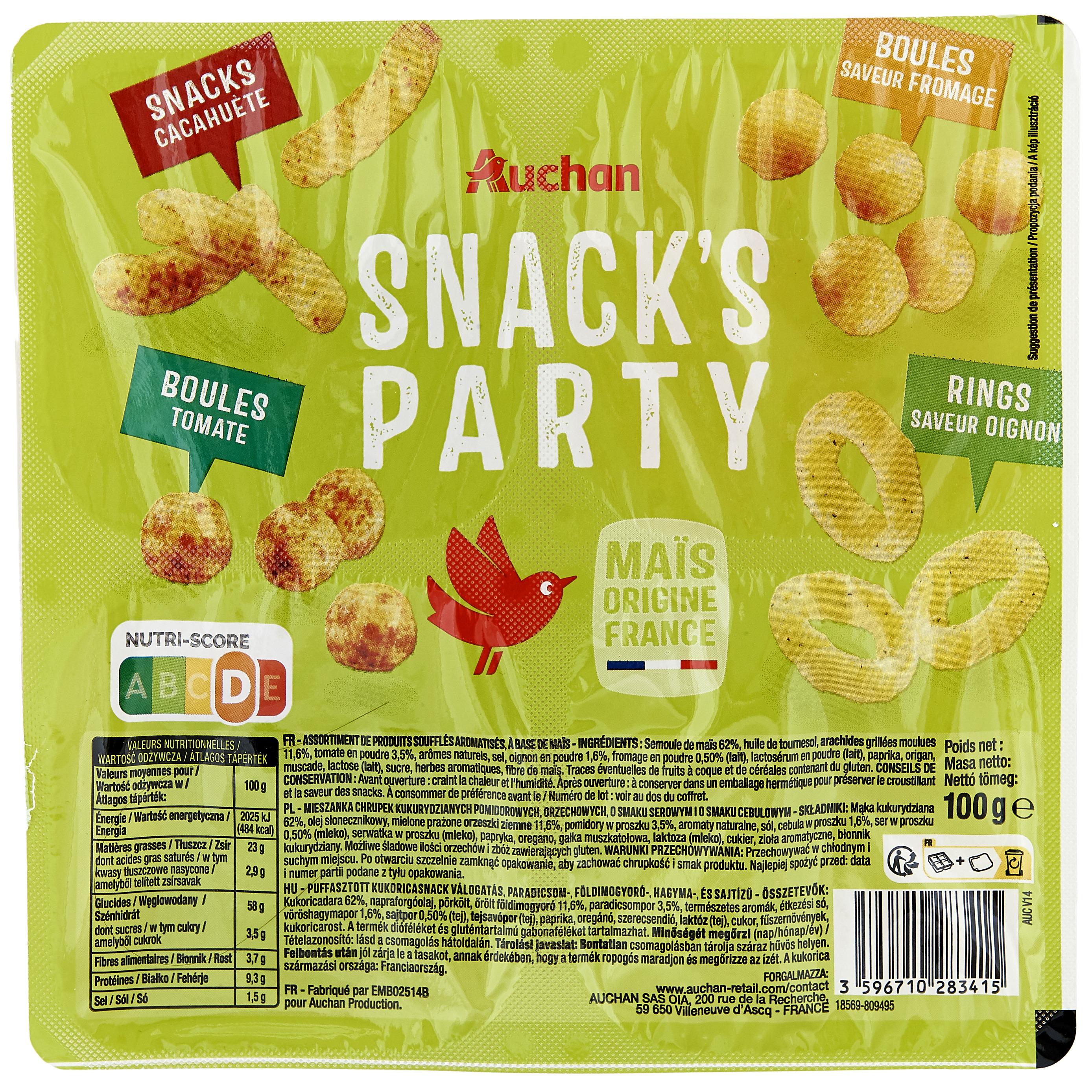 Assortiment de produits soufflés aromatisés, à base de maïs.