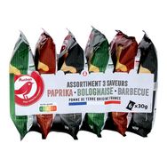 AUCHAN CHIPS ASSORTIMENT 3 SAVEURS 6X30G