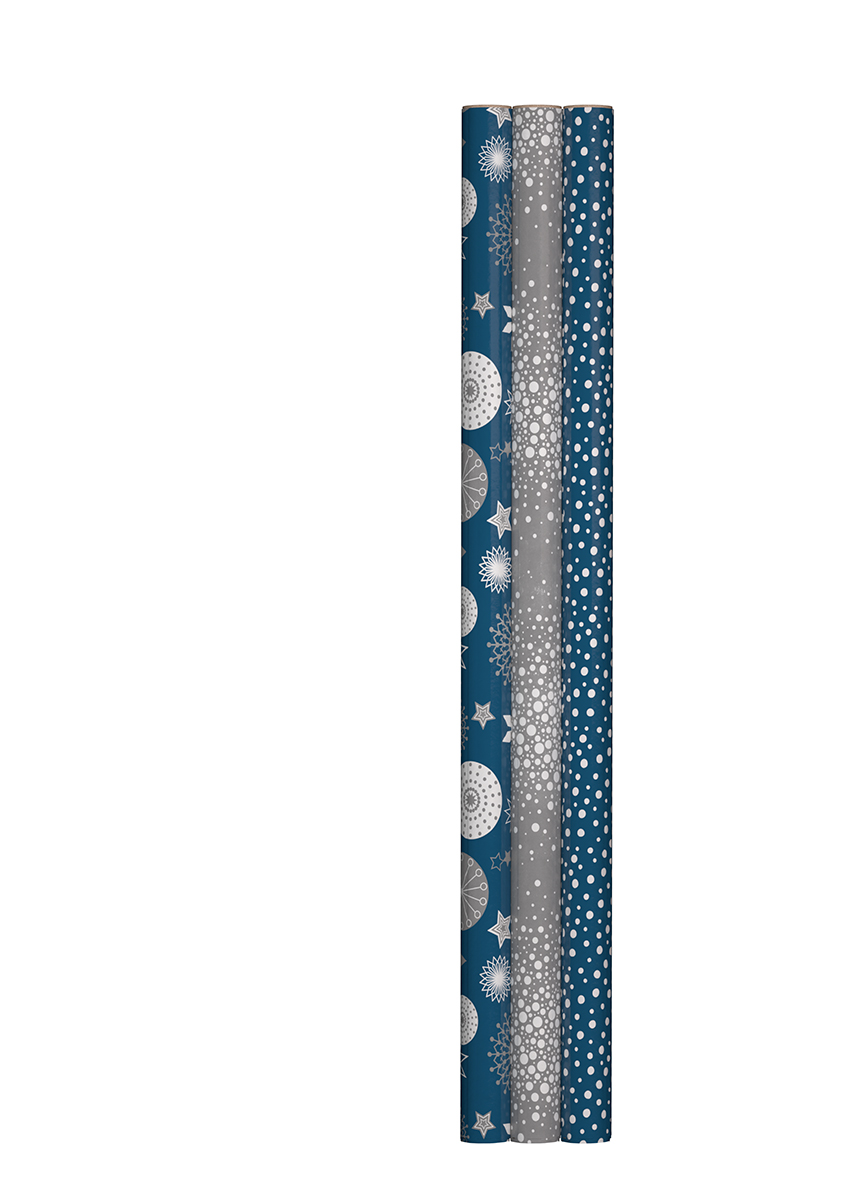 Papier cadeau bleu avec pastille dorée, idéal pour Noël ou autre événement
