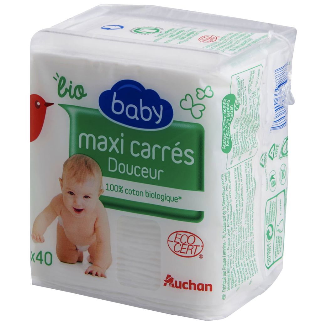 Maxi carré x40, coton 100% bio. AUCHAN BABY BIO MAXI CARRES BEBE X40