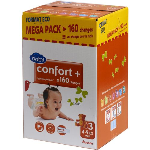 Auchan baby Confort + couches méga pack taille 3 (4-9kg) x40
