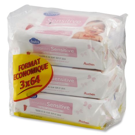 Auchan baby lingette sensitive lait recharge 3x64