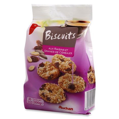 Auchan biscuits aux graines de tournesol et raisins 200g