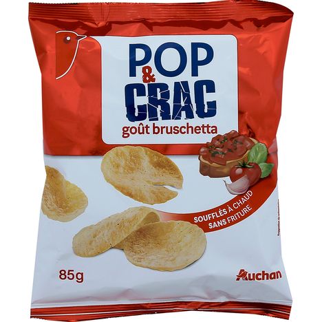Produits soufflés à base de farine de pomme de terre, goût tomate, ail et basilic