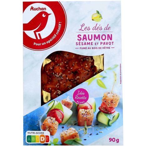 saumon Atlantique fumé (Salmo salar), élevé en Norvège, Ecosse (Royaume-Uni) ou Irlande, fumé au bois de hêtre, aux graines de sésame et pavot Produit décongelé - Ne pas recongeler