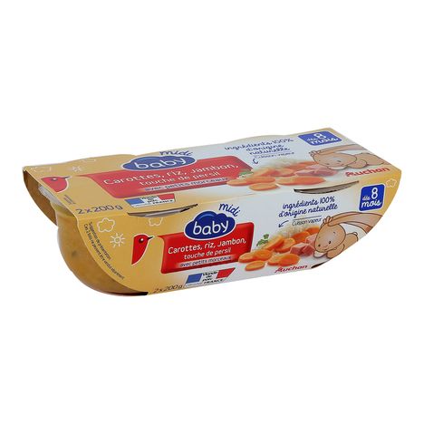 Auchan baby Bol aux carottes riz jambon et persil dès 8 mois 2x200g