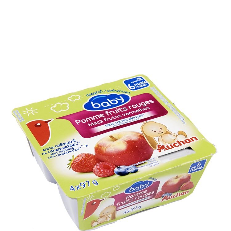 Auchan baby Petit pot dessert pomme et fruits rouges dès 6 mois 4x97g