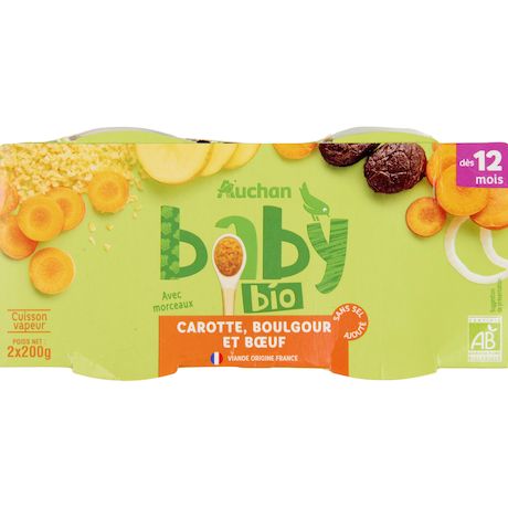 Sans sel ajoutéAvec morceaux Les recettes de la gamme AUCHAN BABY ont été élaborées en collaboration avec des professionnels de la nutrition infantile.