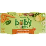 Aliment pour bébé - dès 6 mois - Purée à base de carotte, pomme de terre, haricot vert et viande de boeuf bioFabrication et distribution certifiées par Ecocert FR-BIO-01