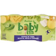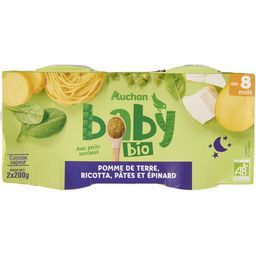 Aliment pour bébé - dès 8 mois - Purée à base de pomme de terre, ricotta, pâtes et épinard bioFabrication et distribution certifiées par Ecocert FR-BIO-01