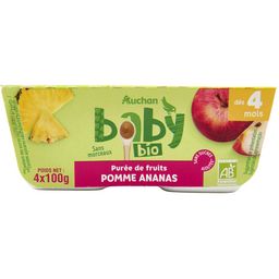 Aliment pour bébé - dès 4 mois - purée de fruits bio - pommes et ananas, sans sucres ajoutés**Fabrication et distribution certifiées par Ecocert FR-BIO-01