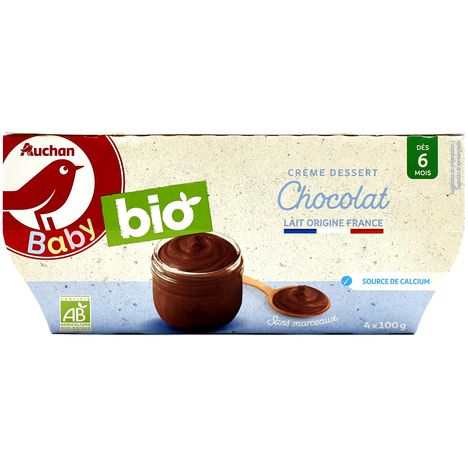 Dessert lacté chocolat - Dès 6 mois-Aliment adapté à l'enfant Fabrication certifiée par Bureau Veritas FR-BIO-10. Distribution certifiée par Ecocert FR-BIO-01