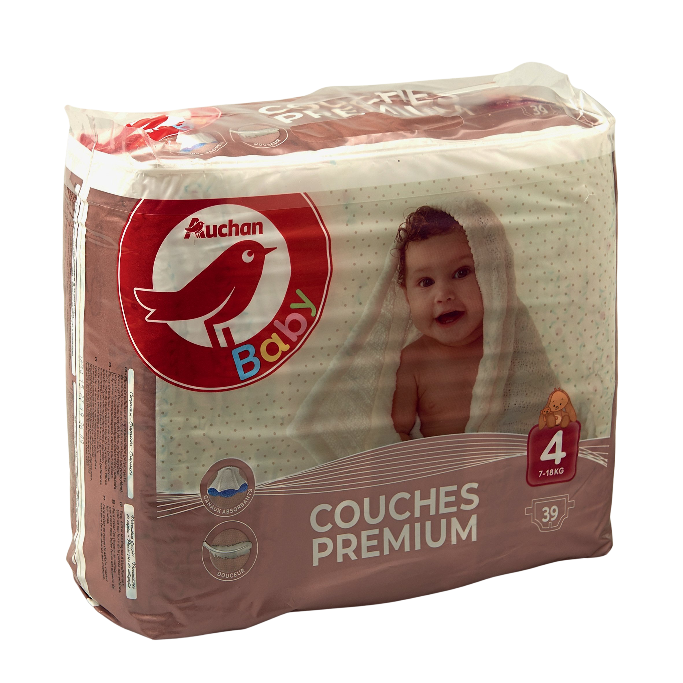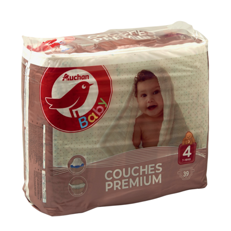 Découvrez notre gamme de couches Premium Auchan Baby, l’alliée de bébé au quotidien.Afin de préserver la peau de bébé, nous avons décidé de créer des couches hypoallergéniques sans parfum, ni lotion qui sont testées dermatologiquement.Grâce à leurs canaux d’absorption et à leurs barrières anti-fuites le liquide est parfaitement réparti dans la couche, pour une peau de bébé protégée et maintenue au sec de jour comme de nuit, et ce jusqu’à 12h.Fines, flexibles et dotées de leur voile intérieur ultra-doux et d’un voile extérieur embossé, les couches Premium procurent une sensation de confort optimale pour bébé qui est libre de ses mouvements. Les couches Premium possèdent également un indicateur d’humidité pour avertir papa et maman.