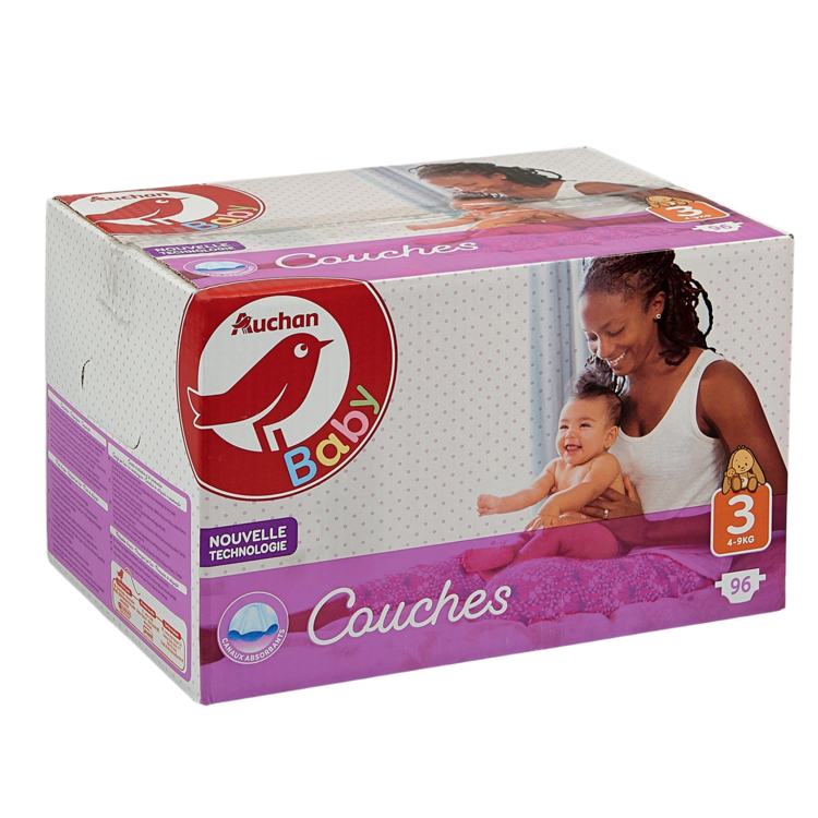 Adoptez les couches Auchan Baby qui faciliteront le quotidien de Papa et Maman de la taille 3 à la taille 6.