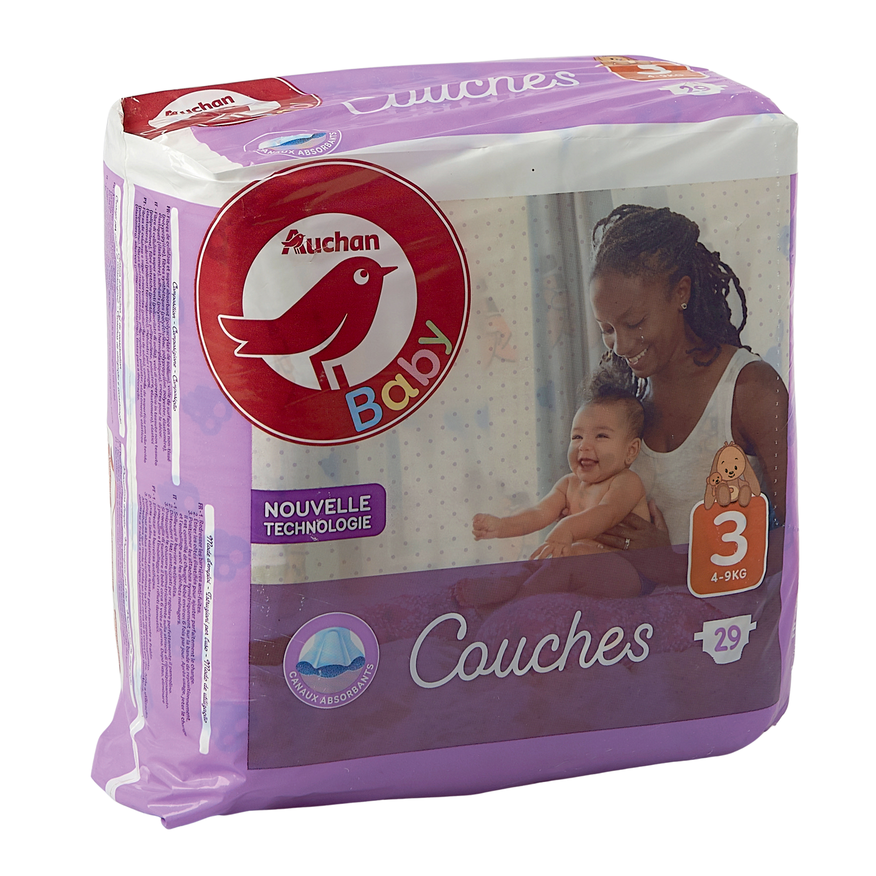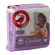 Adoptez les couches Auchan Baby qui faciliteront le quotidien de Papa et Maman de la taille 3 à la taille 6. Grâce à leurs canaux d’absorption et à leurs barrières anti-fuites, le liquide est parfaitement réparti dans la couche, pour une peau de bébé protégée et maintenue au sec de jour comme de nuit, et ce jusqu’à 12h. Fines, flexibles et dotées de leur voile ultra-doux, les couches procurent une sensation de confort optimale pour bébé qui est libre de ses mouvements. Et parce que nous souhaitons prendre soin de la peau de bébé, nous avons décidé de créer des couches sans parfum, ni lotion qui sont testées dermatologiquement.Les couches Auchan Baby ne font pas l’impasse sur le style de bébé en affichant des motifs tout doux.