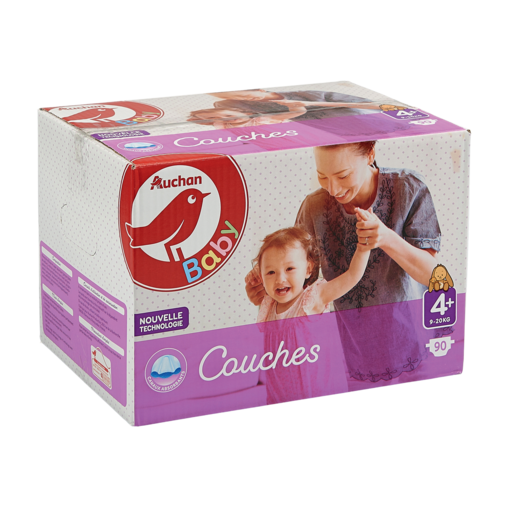 Adoptez les couches Auchan Baby qui faciliteront le quotidien de Papa et Maman de la taille 3 à la taille 6.Grâce à leurs canaux d’absorption et à leurs barrières anti-fuites, le liquide est parfaitement réparti dans la couche, pour une peau de bébé protégée et maintenue au sec de jour comme de nuit, et ce jusqu’à 12h. Fines, flexibles et dotées de leur voile ultra-doux, les couches procurent une sensation de confort optimale pour bébé qui est libre de ses mouvements. Et parce que nous souhaitons prendre soin de la peau de bébé, nous avons décidé de créer des couches sans parfum, ni lotion qui sont testées dermatologiquement.Les couches Auchan Baby ne font pas l’impasse sur le style de bébé en affichant des motifs tout doux.La taille 4+ présente les mêmes dimensions que la taille 4, mais offre une plus grande qualité d’absorption pour les bébés qui ont des besoins plus importants : idéal pour les protéger des fuites et pour garder leur peau au sec.