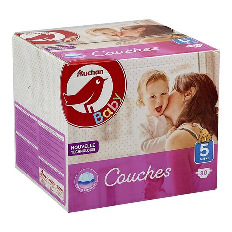 Adoptez les couches Auchan Baby qui faciliteront le quotidien de Papa et Maman de la taille 3 à la taille 6. Grâce à leurs canaux d’absorption et à leurs barrières anti-fuites, le liquide est parfaitement réparti dans la couche, pour une peau de bébé protégée et maintenue au sec de jour comme de nui