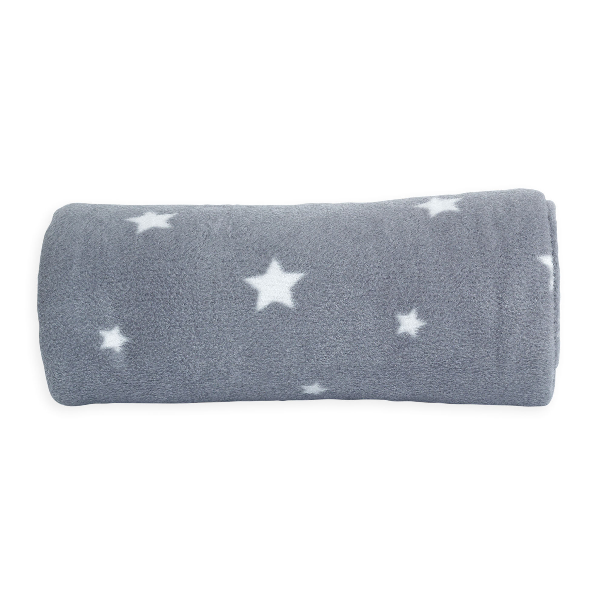 Couverture polaire imprimée étoiles blanches sur fond gris
