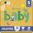 Faciles à enfiler et à retirer, les culottes Auchan Baby sont idéales pour l’apprentissage de la propreté. Protégé des fuites et la peau bien au sec, Bébé sera libre de ses mouvements pour jouer et gambader.Languette de refermabilitéLiberté de mouvementsUltra fineCanaux d'absorptionVoile de surface testé dermatologiquementToucher ultra secBarrières anti-fuitesUltra douxFacile à retirerCet emballage contient au moins 30% de plastique recyclé Jusqu'à 12h de protection0% parfum, lotion, colorant en contact avec la peau.